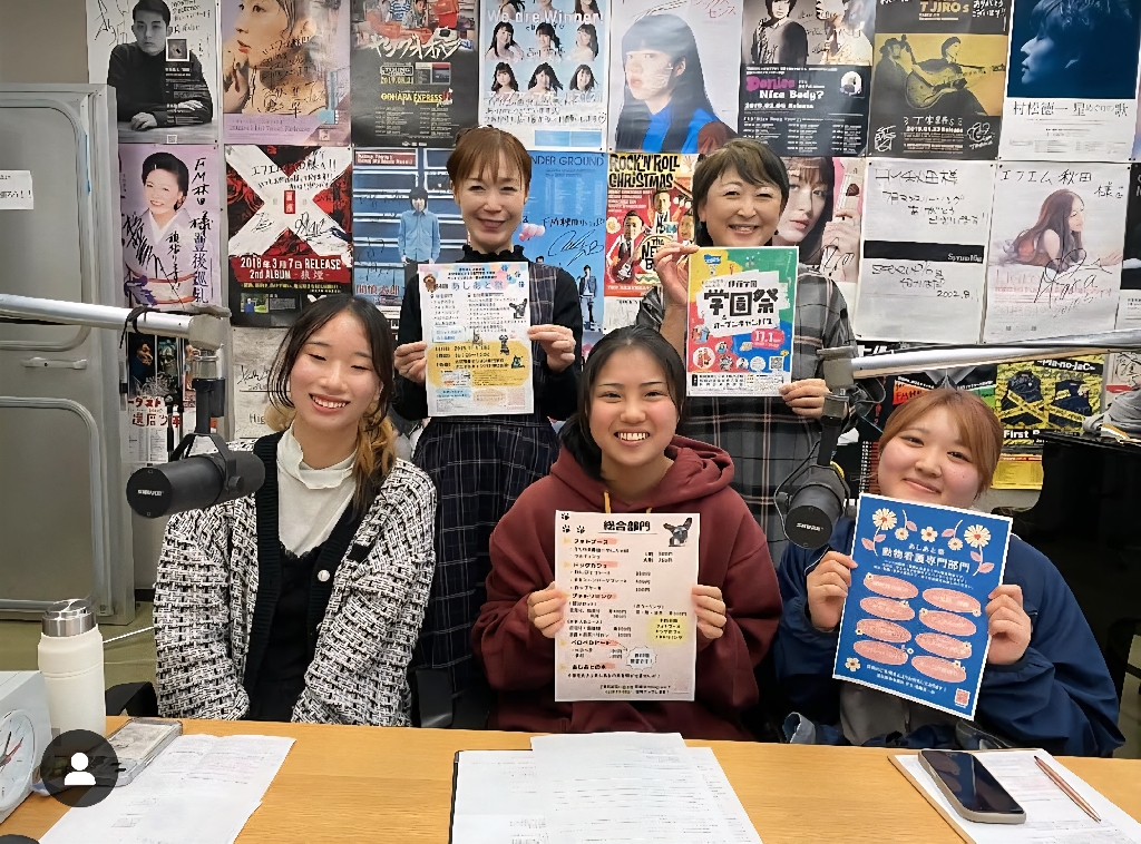 📻エフエム秋田「サクラボ🌸オンライン」の収録がありました🎙️今回は、ペットビジネス科トリマーコース2年・加畠優杏さん、ペットビジネス科動物看護コース(※2024年度より愛玩動物看護科へ名称変更)3年・京野愛菜さん、愛玩動物看護科2年・永井こなつさんの3名がゲスト出演し、11月1日(土)開催のあしあと祭の告知をしてきました📣番組では、メインパーソナリティの桜庭みさおさん、番組アドバイザーのたなかのりこさんと一緒に、あしあと祭の魅力をたっぷりお話ししてきました😊ラジオ局に向かう車内ではド緊張していた3人でしたが、いざ収録が始まるとしっかりトークできていました👏✨この放送をきっかけに、1人でも多くのお客様にご来場いただけたら嬉しいです🐾