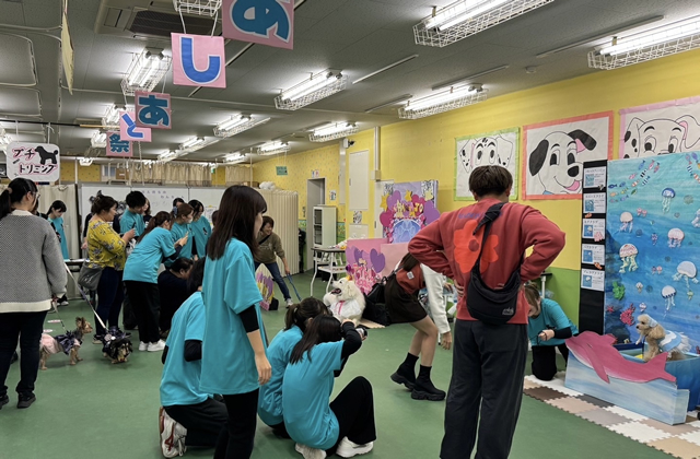 総合部門はペットビジネス科トリマーコース1・2年生、ペットビジネス科愛動物看護コース3年生(※2024年度より愛玩動物看護科に名称変更)、愛玩動物看護科1年生による混合プロジェクトです。特にトリマーコース2年生と看護コース3年生は総合部門およびイベント全体の企画、運営、管理に関わるすべてを担当します。経費管理や人員配置、広報活動など、運営に必要なすべての要素を統括する、ペットビジネス総合実践科目の集大成です。お客様の気持ちを第一に考え、おもてなしさせていただきます!!!