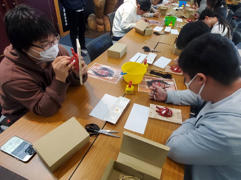 まずは男鹿温泉交流会館「五風」にて、なまはげの壁掛け作り体験。